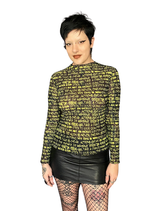 Black & Chartreuse Empowering Graffiti Mesh Top