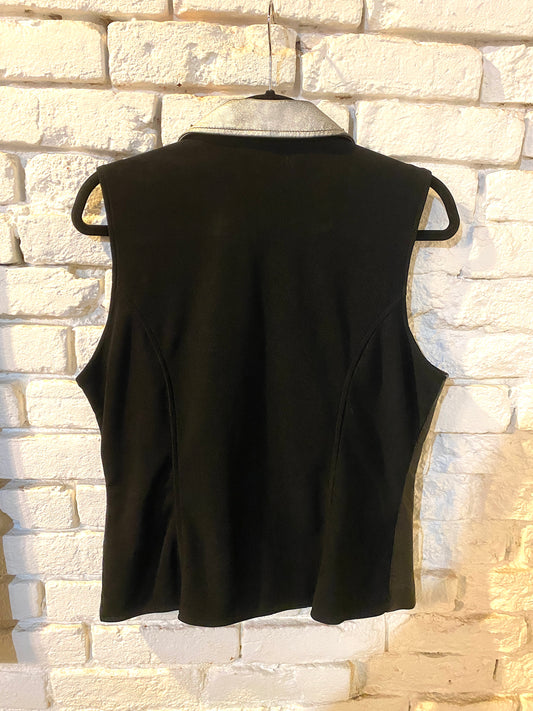 Black Leather Spiked Vest, Upcycled Womens L