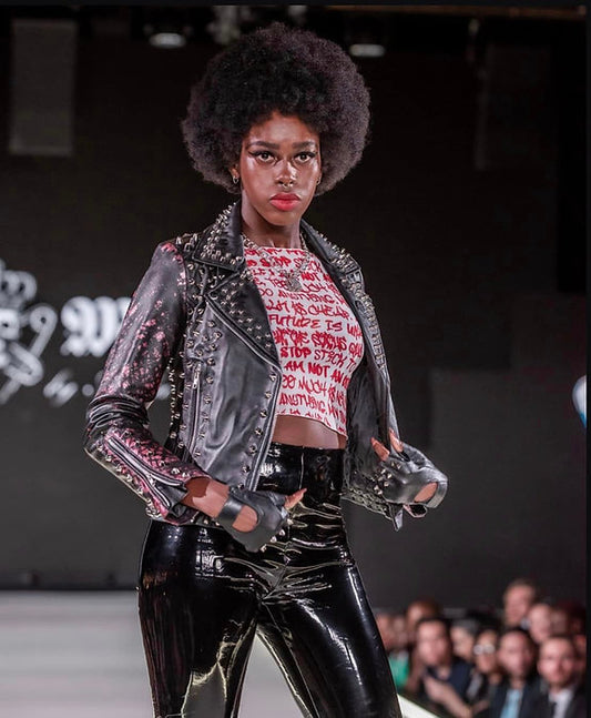 Custom Order Emerald & Black "Talk is Cheap" Studded Sheep Leather Jacket S-3XL
