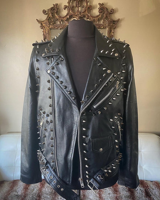 Custom Order High Quality Lightweight Lambskin Leather Studded Mens Motorcycle Jacket, XS-4XL