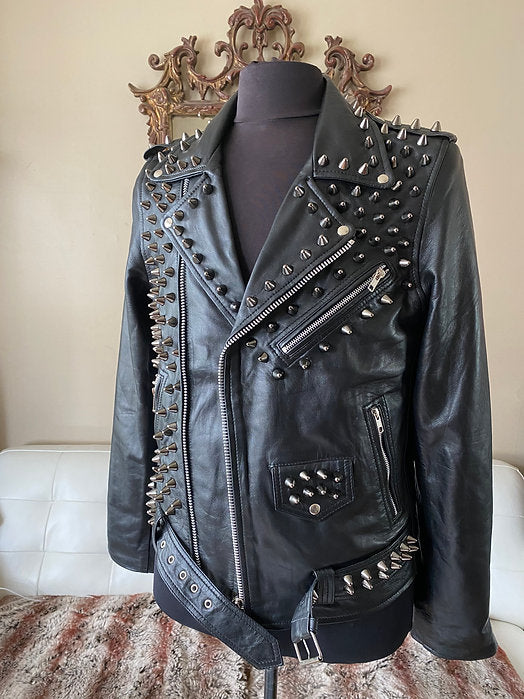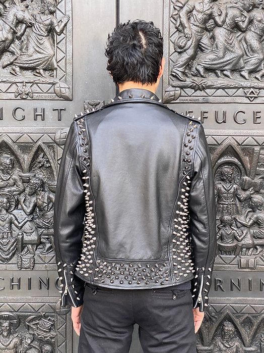 Custom Order High Quality Lambskin Leather Motorcycle Jacket w Black Studs, XS-4XL