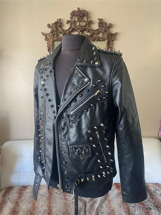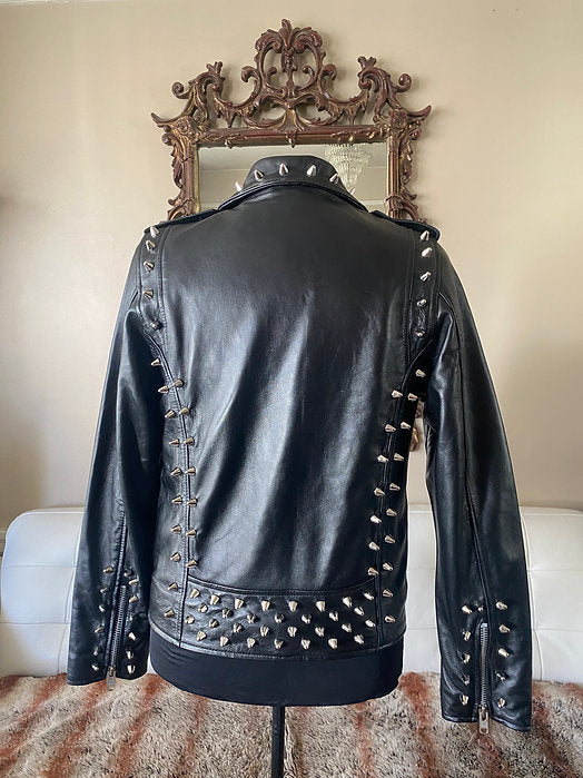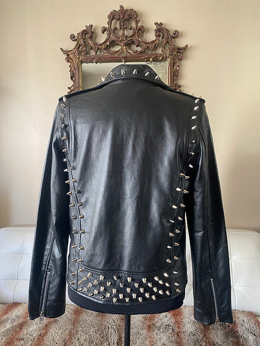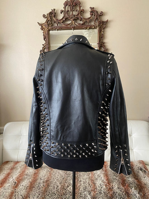 Custom Order High Quality Lambskin Leather Motorcycle Jacket w Black Studs, XS-4XL