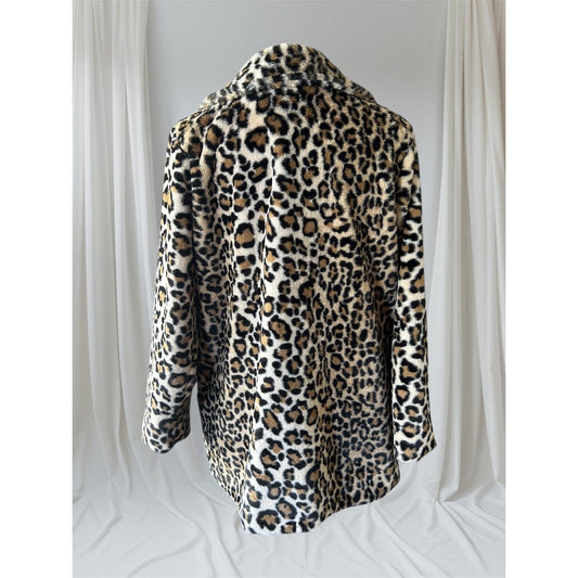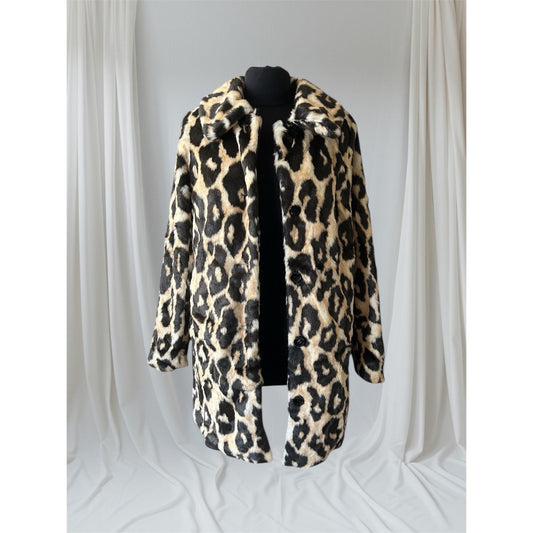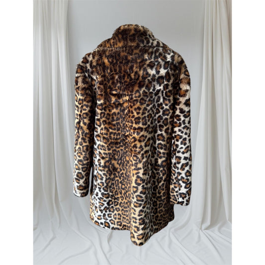 Leopard Print Faux Fur Coat, L