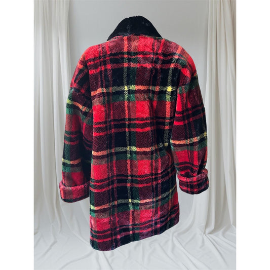 Tartan Faux Fur Coat, M