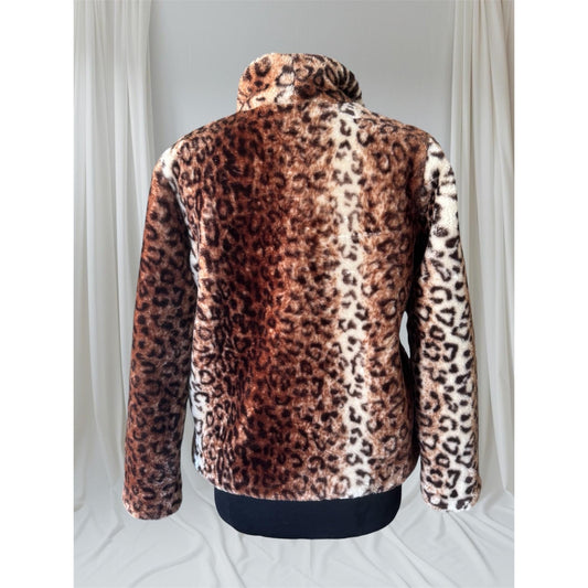 Leopard Print Faux Fur Coat, M