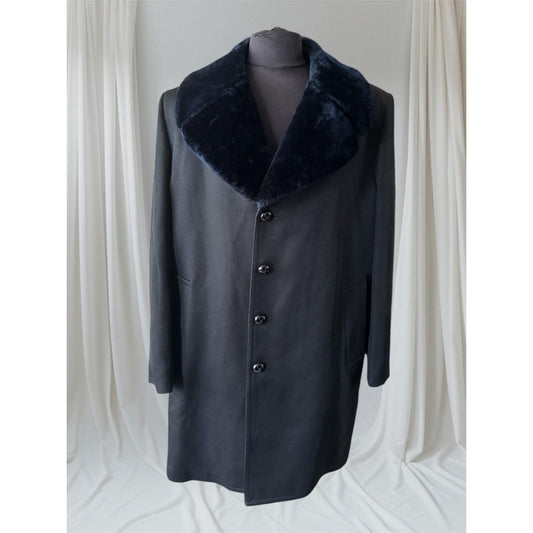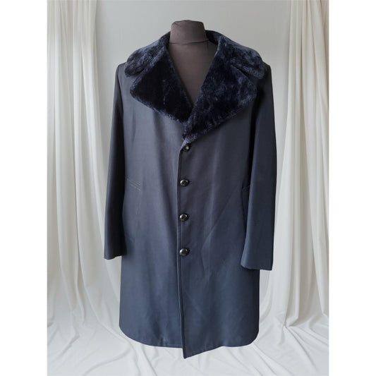 Men's Navy Pea Coat/ Trench Coat with Faux Fur Collar, 44R/ X-Large