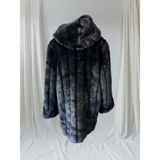 Women's Black Hooded Faux Fur Coat, Large, Dennis Basso