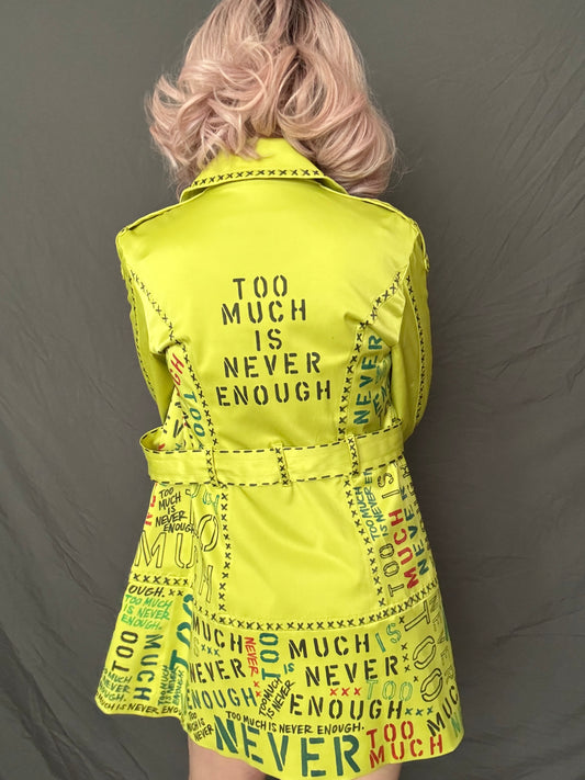 TOO MUCH IS NEVER ENOUGH Womens Chartreuse Trench Coat, Small