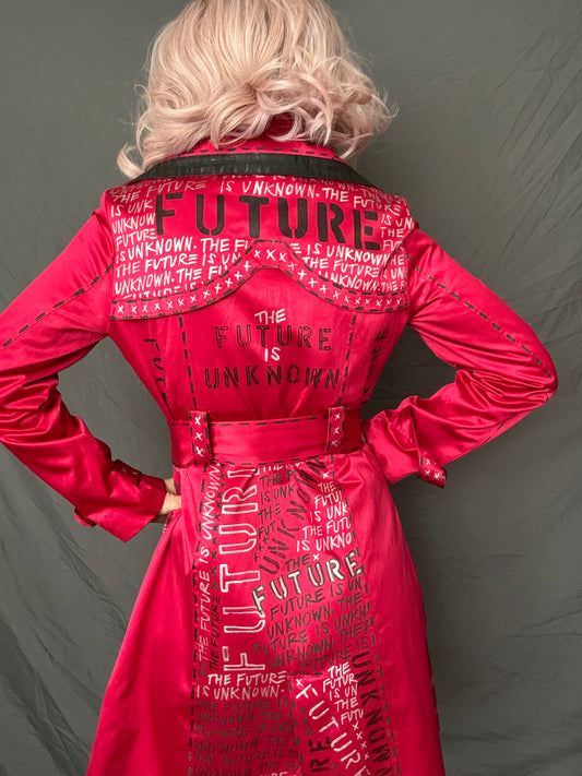 THE FUTURE IS UNKNOWN Womens Red Trench Coat, Small