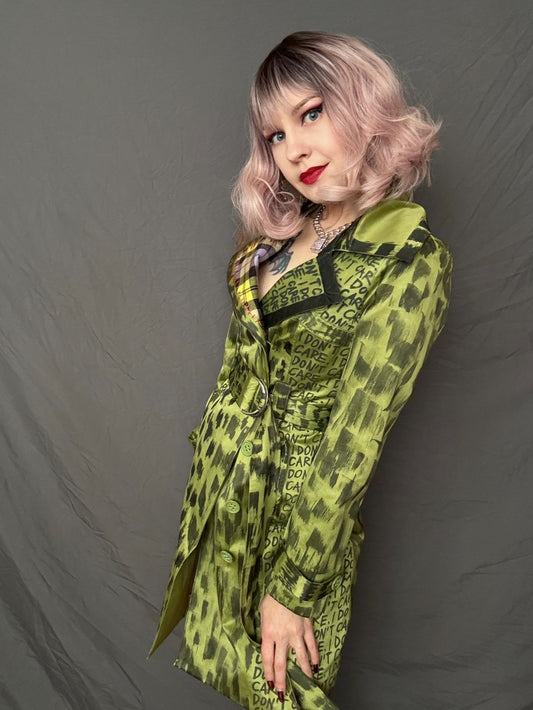 I DON'T CARE Womens Chartreuse Trench Coat, X-Small
