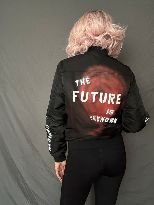 THE FUTURE IS UNKNOWN Womens Bomber Jacket, (Custom Order in any size)