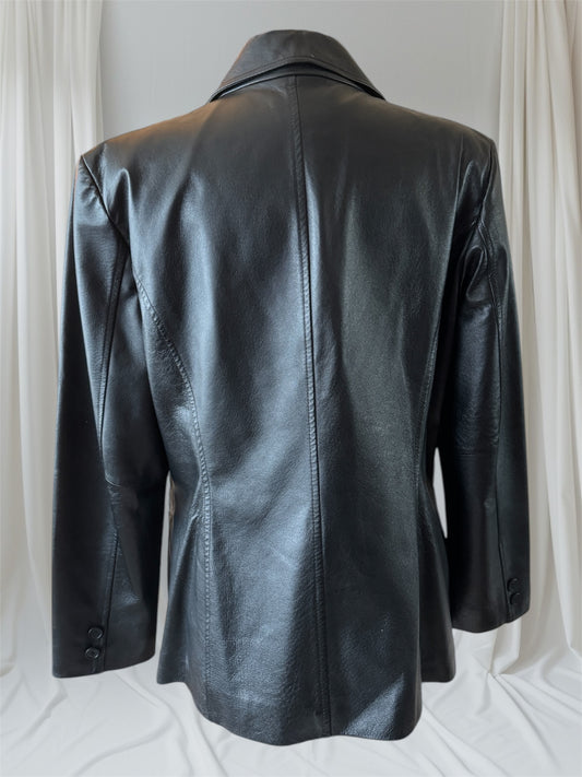 Black Studded Womens Lambskin Motorcycle Jacket, Size M