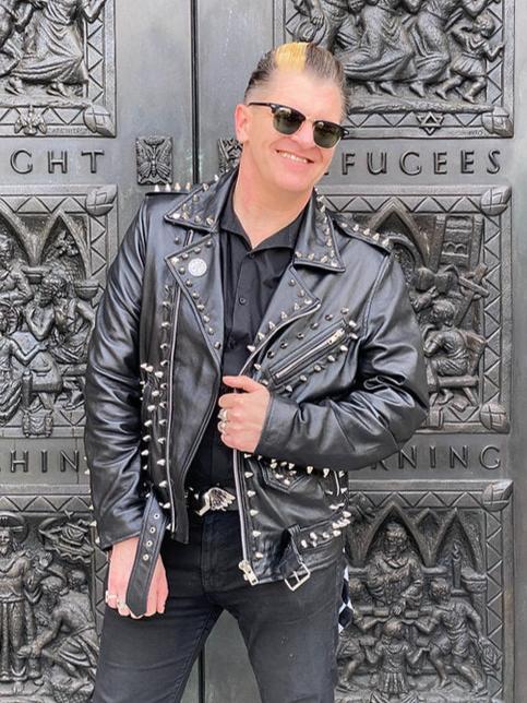 Imported, High-Quality Lightweight Lambskin Leather Motorcycle Jacket, Hand Studded. These jackets are stunning, high quality leather, punk couture. This one pictured is marked an XL, but these run slim so it is a true Large. Model has a 40" chest. Made to order. Order in your size.