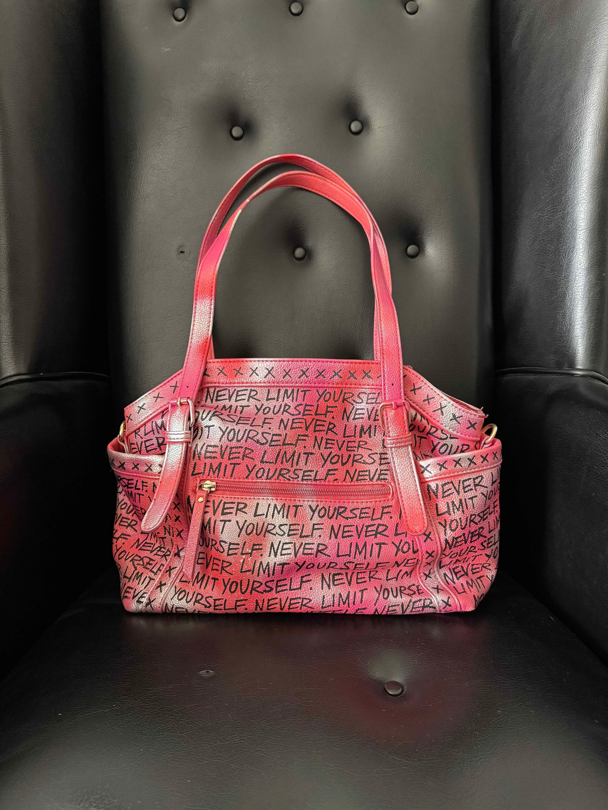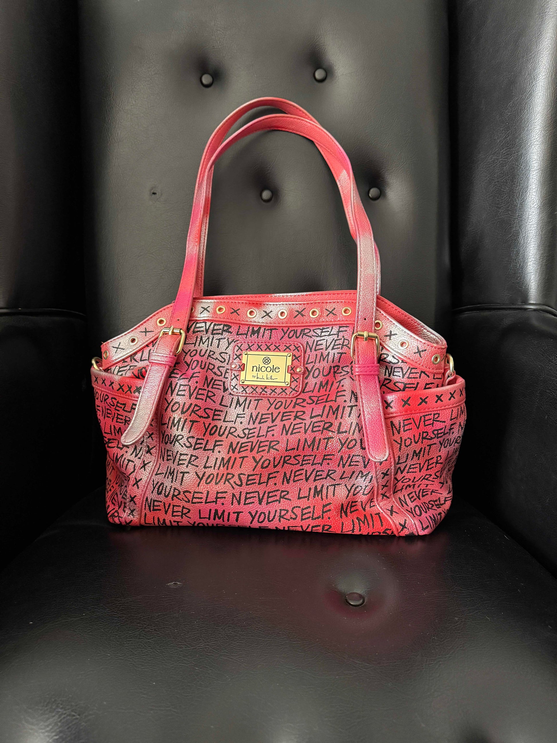 Hot Pink Empowering Statement Genuine Leather custom purse is one-of-a-kind, hand painted, upcycled. This bag will bring you constant compliments! One of one! Original Nicole Miller brand purse with gold hardware.
