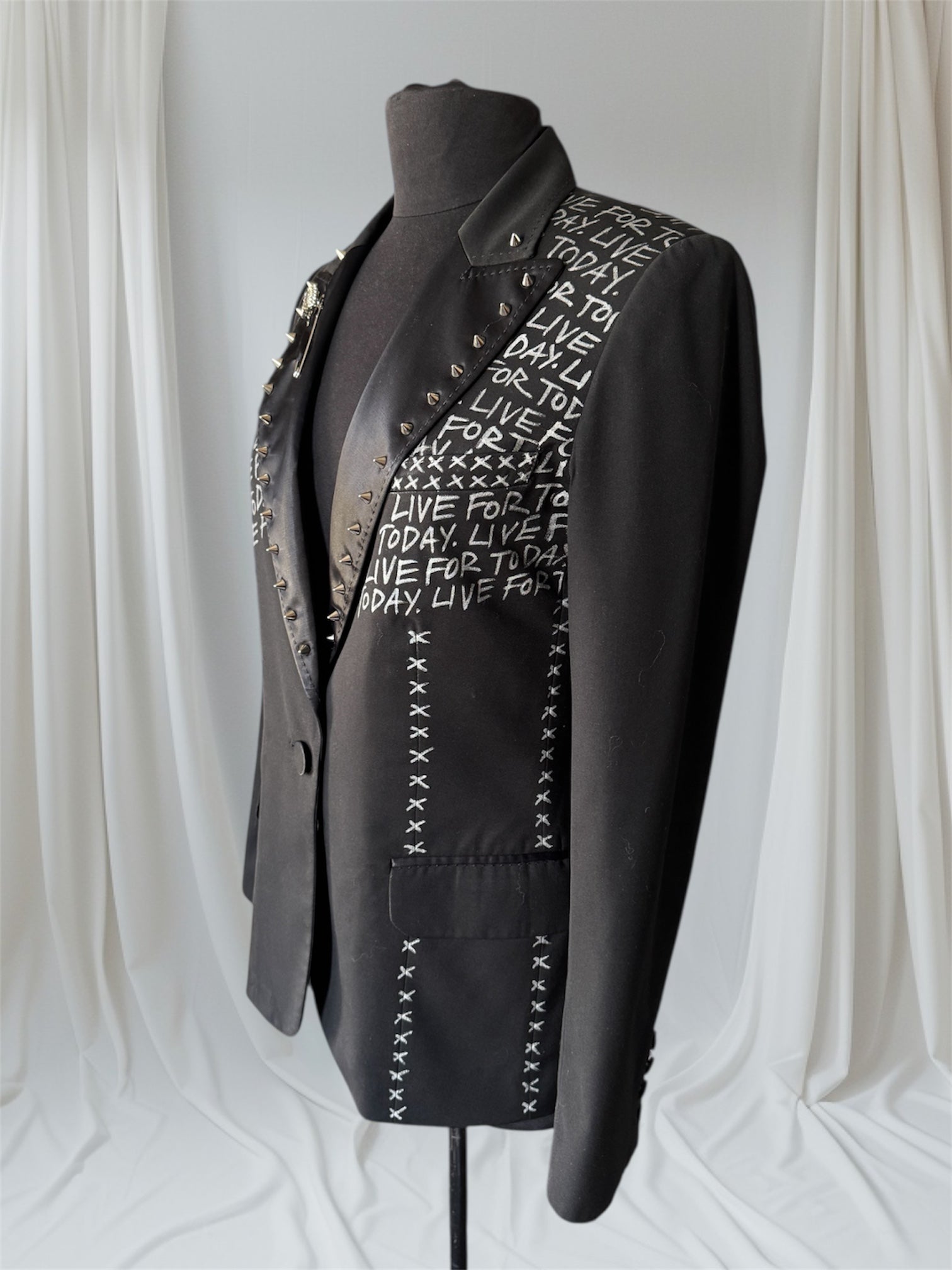 LIVE FOR TODAY Women's Suit Jacket with Spiked Lapels. Dry Clean Safe, One of a Kind, Upcycled/ Recycled Sustainable Clothing.