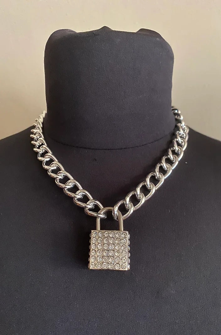 Gorgeous high-quality Unisex Lock and chain necklace. This can be ordered in 16.5", 17", 18", 19" or 20." Standard Womens is 17", Standard Mens is 18". *Please contact us to specify your chain measurement after ordering.