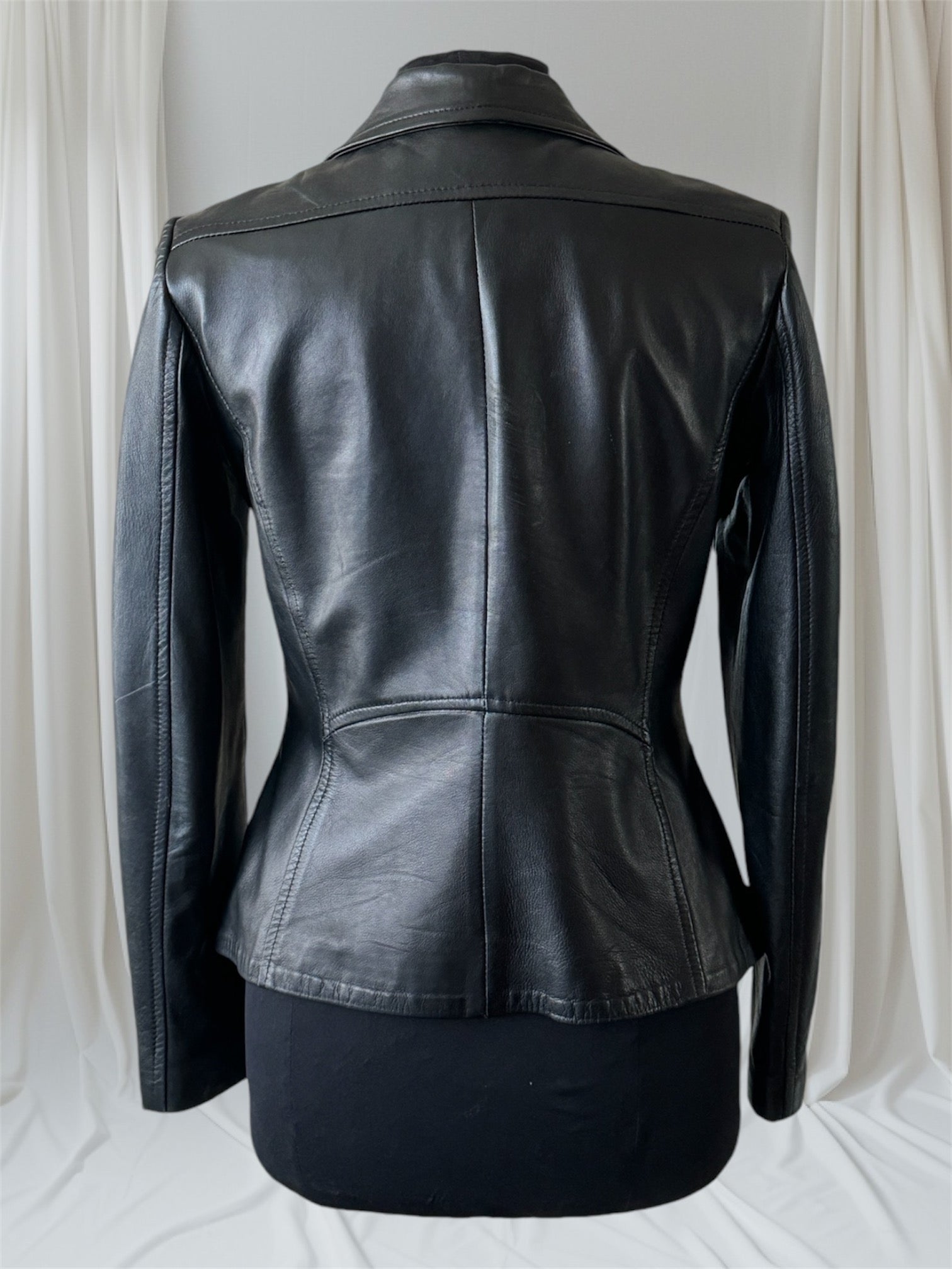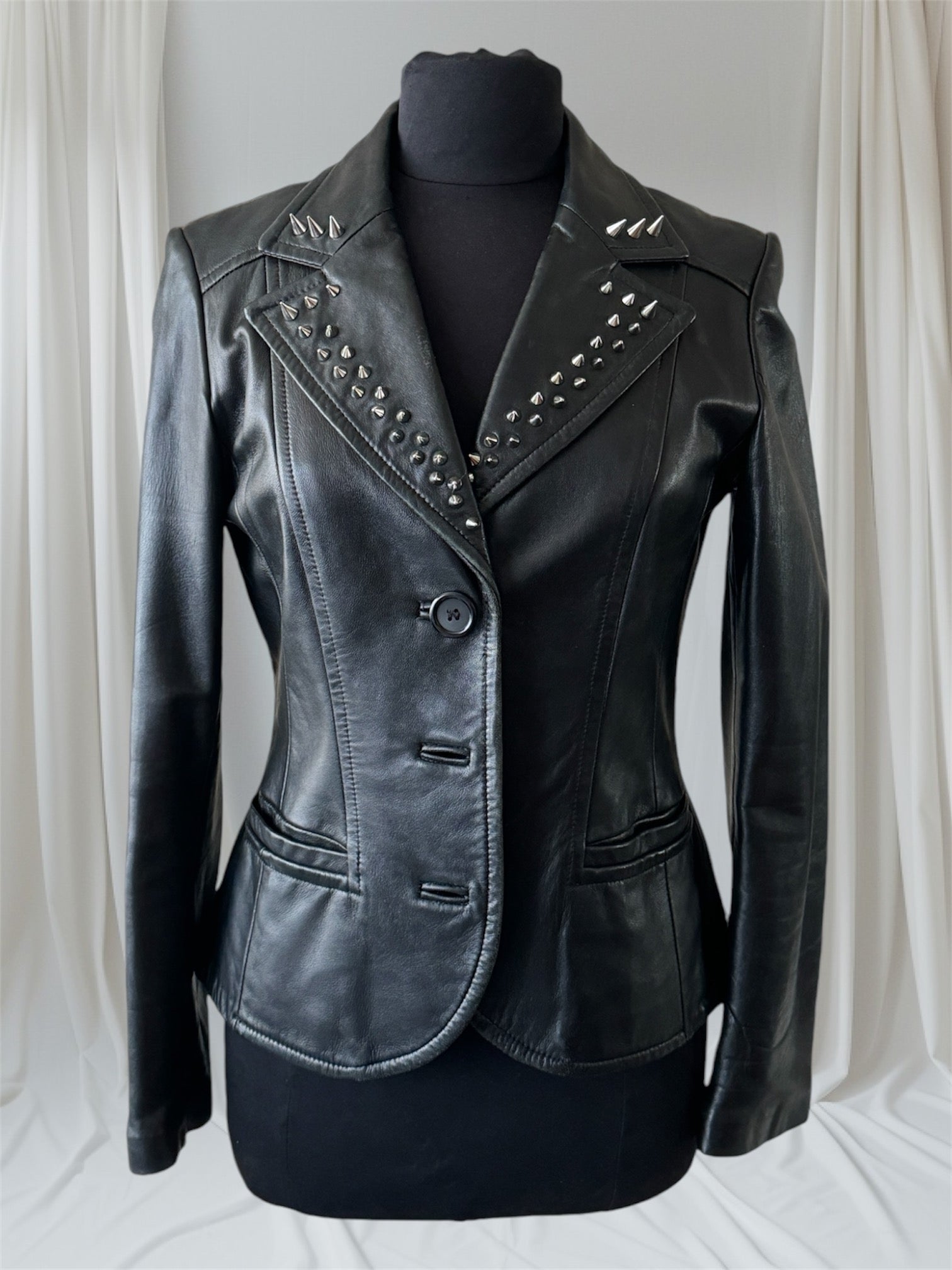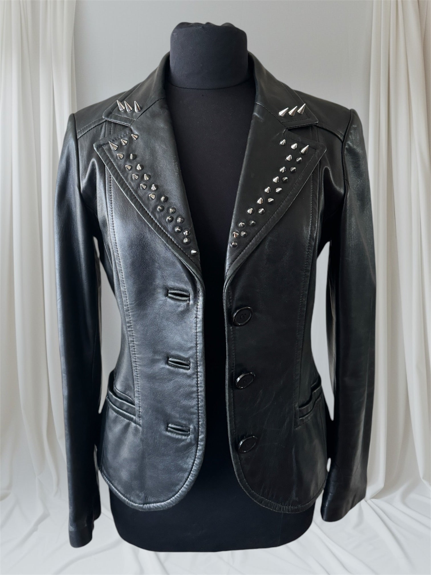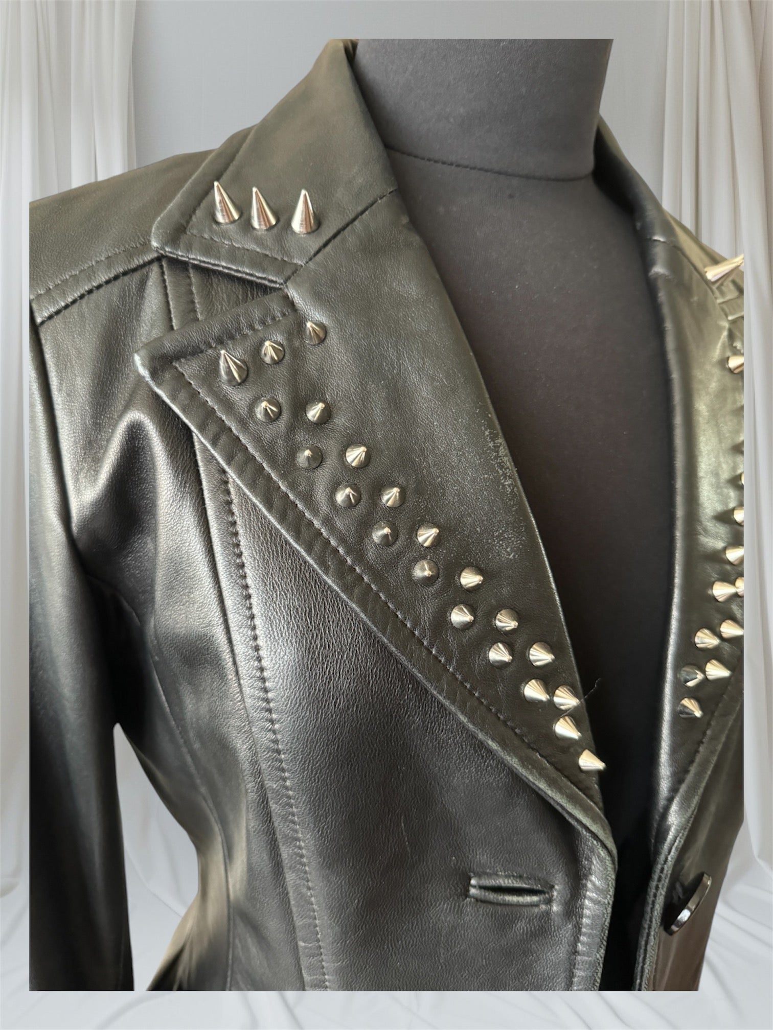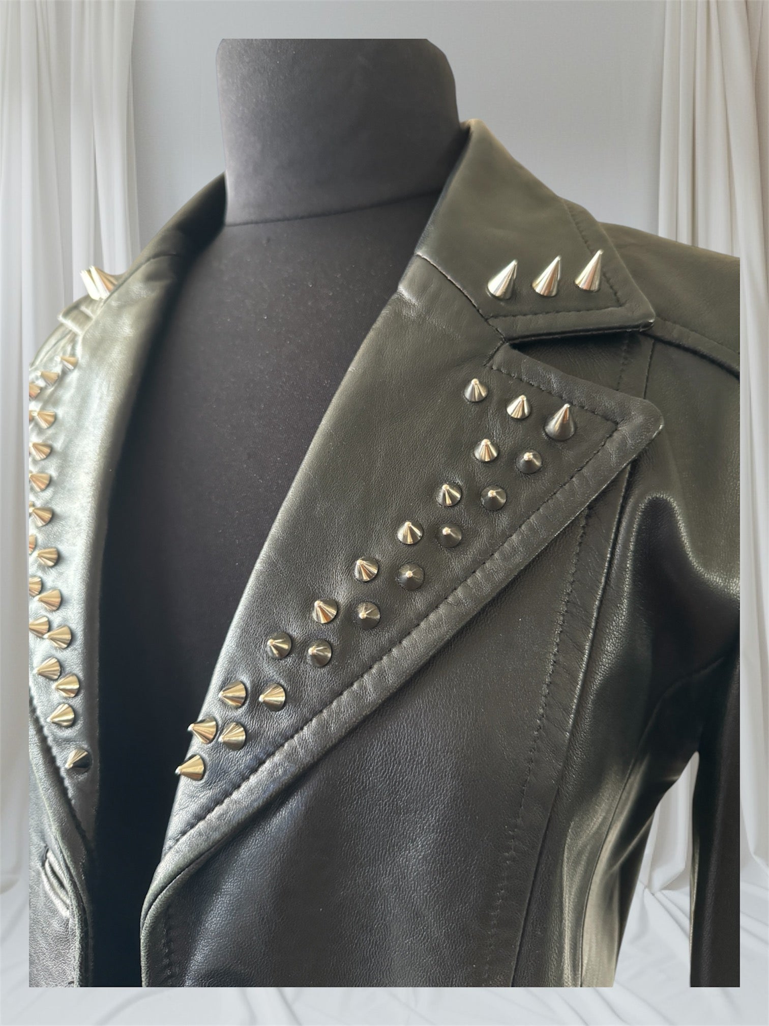 Size Small (Fits a Size 4-6) Women's Upcycled Soft Napa Leather Blazer with spikes. One of a kind. High Quality. Standout piece!
