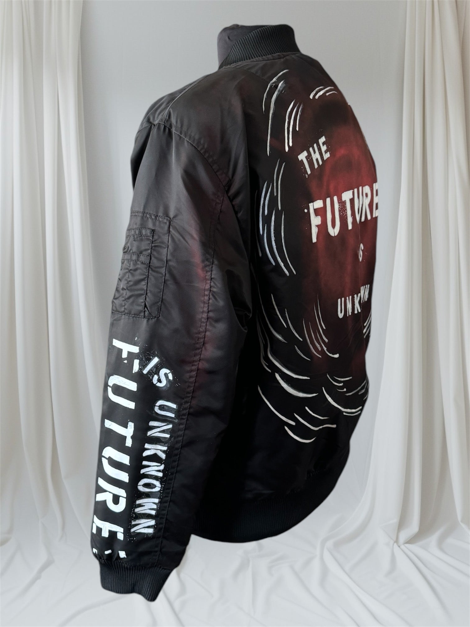 THE FUTURE IS UNKNOWN Mens Bomber Jacket, Large (Custom Order in any size)