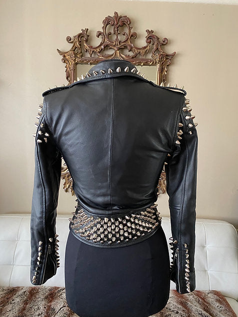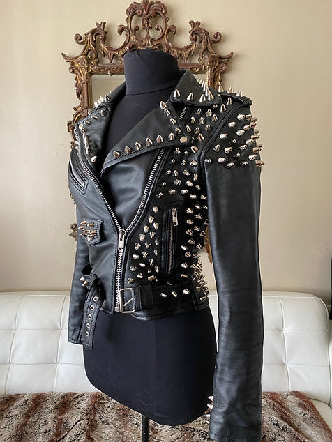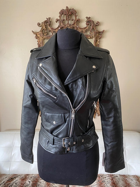 Women's Lambskin Lightweight Leather Biker with Epaulettes & Belt-- This jacket is higher quality leather than the beltless style, and is imported from our London supplier. This is our DREAM JACKET, found after over a year of research. Size Chart in photos.