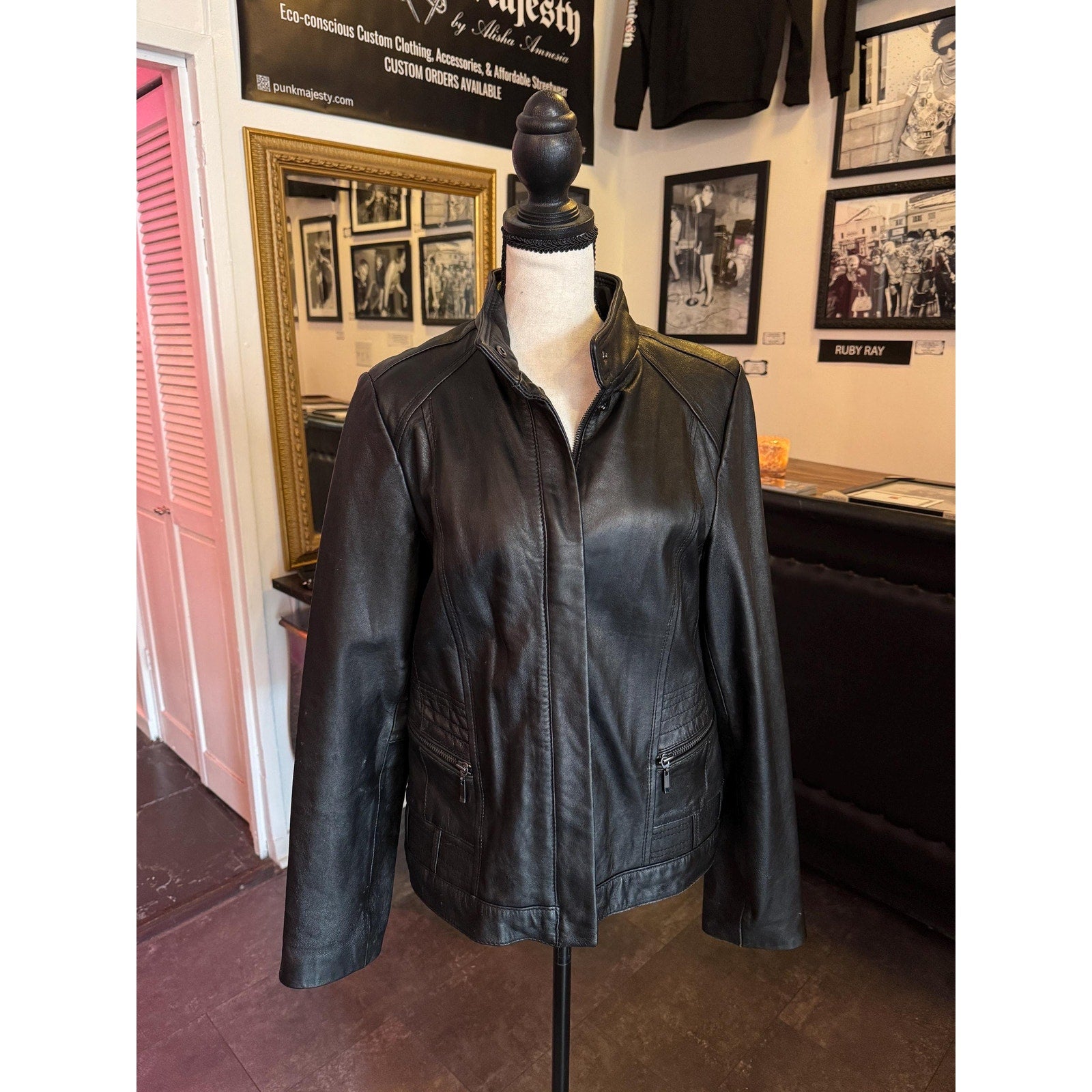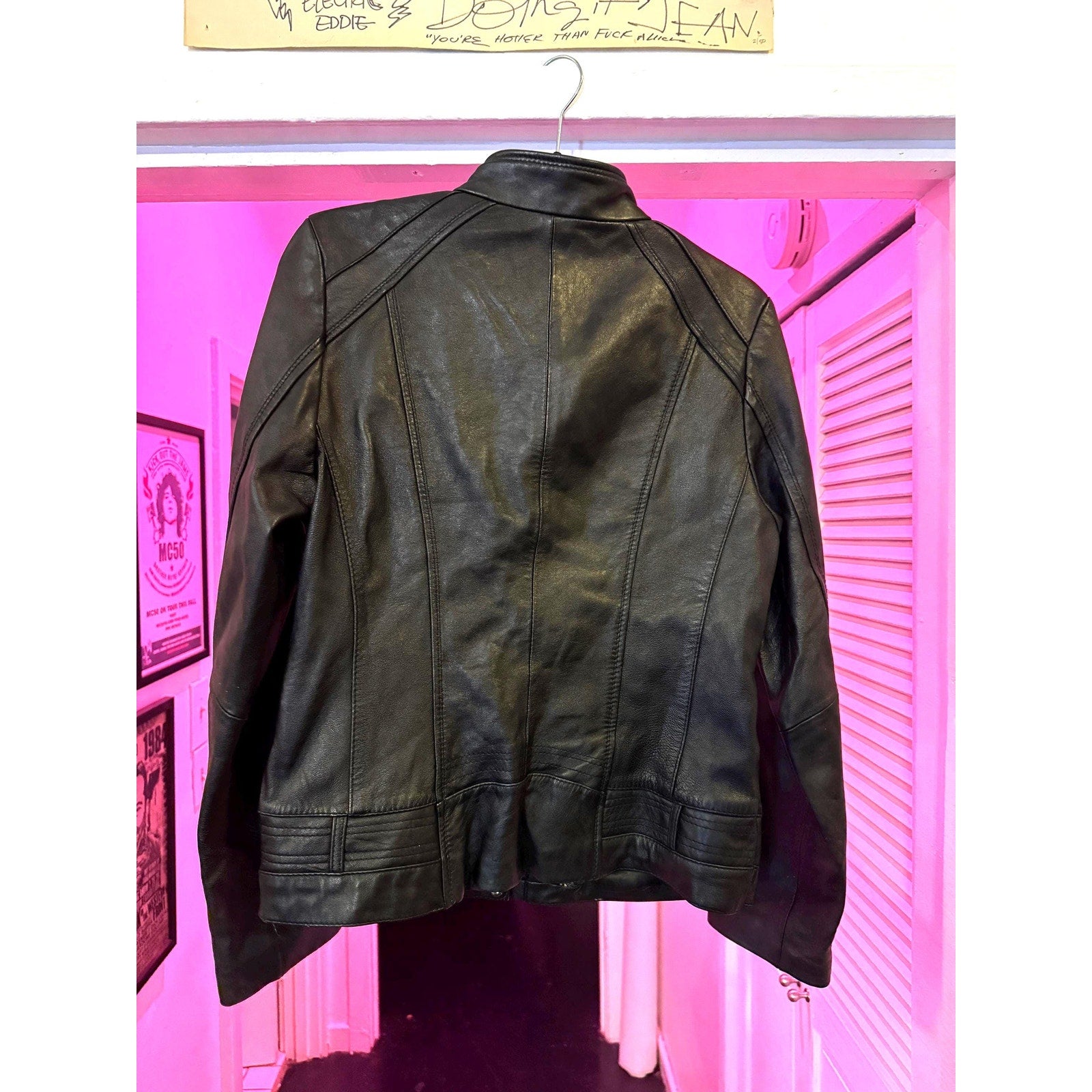 Women's Leather Motorcycle Jacket, Medium