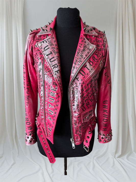 The Future is Unknown/ Live For Today Pink Leather Jacket, Small